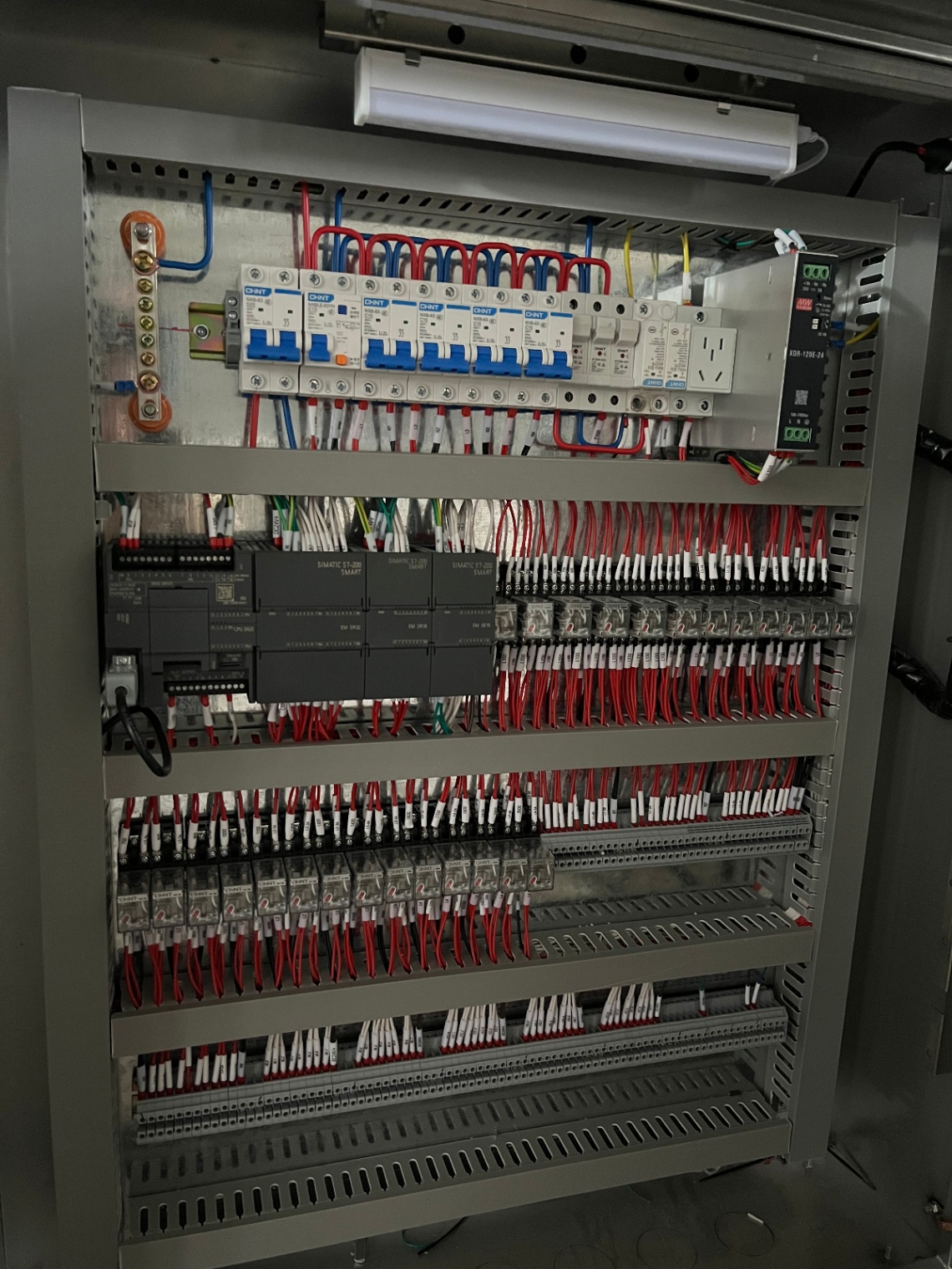 在项目实施现场,倍艾斯工程师们严格遵循工艺流程与安全规范,对每一处接线点位进行精细化作业。本次工作不仅涉及大量动力与控制线路的铺设,更注重于各独立控制单元与中央PLC系统之间的逻辑衔接与信号畅通,是实现全厂设备联动控制、数据集中监控的关键物理基础。团队采用的模块化接线工艺与标准化作业流程,有效保障了系统未来的可维护性与扩展性,展现了倍艾斯科技在工业自动化集成领域的深厚技术积淀与严谨的项目执行力。