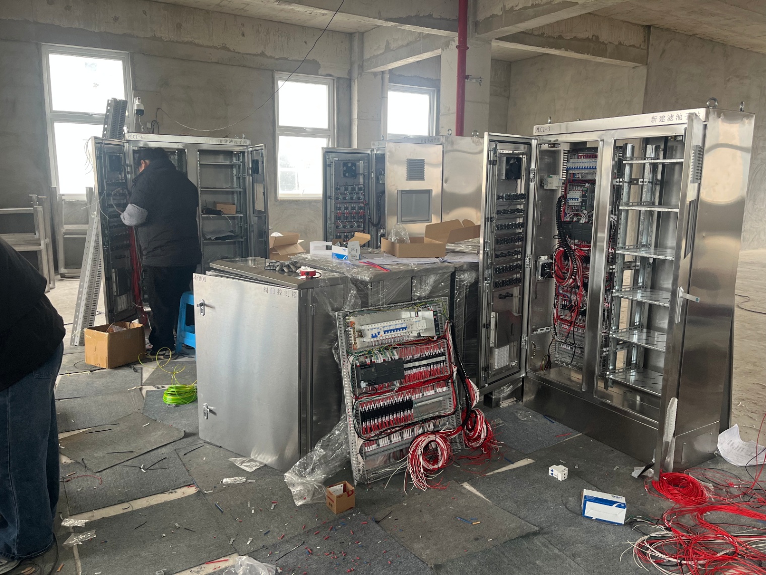 日前,倍艾斯科技在某市大型水厂现代化改造项目现场,正有序推进关键电气自控设备的安装与系统集成工作。公司技术团队深入项目一线,全面负责闸阀智能控制箱、信号分配箱、卸料电源箱、检修配电箱、搅拌机控制箱、潜污泵控制箱、轴流风机控制箱以及核心PLC控制系统的安装、布线与接线任务,为水厂稳定运行与智能化升级提供坚实的技术支撑。